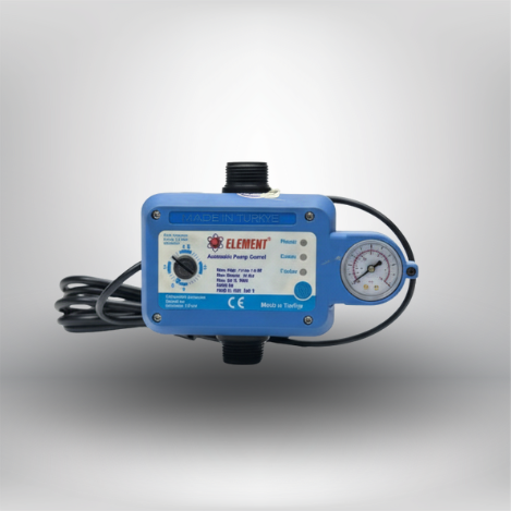 The ELEMENT ELT-PCA Automatic Pump Controller is engineered for reliable water-pump automation with vertically aligned outlet design. Its front-adjustable pressure gauge allows precise control between 1–4 bar, ensuring stable and efficient pump operation. Equipped with a 1-meter factory cable and built-in manometer, it delivers plug-and-play convenience for homeowners and professionals. Built for durability and seamless performance, this hydromat controller is ideal for boosting, irrigation, and domestic water systems.